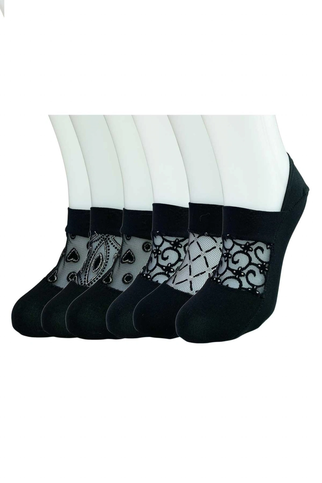 Paket İçeriği; 6 Adet Önü Transparan Kadın Fantezi Desenli Babet Çorap
