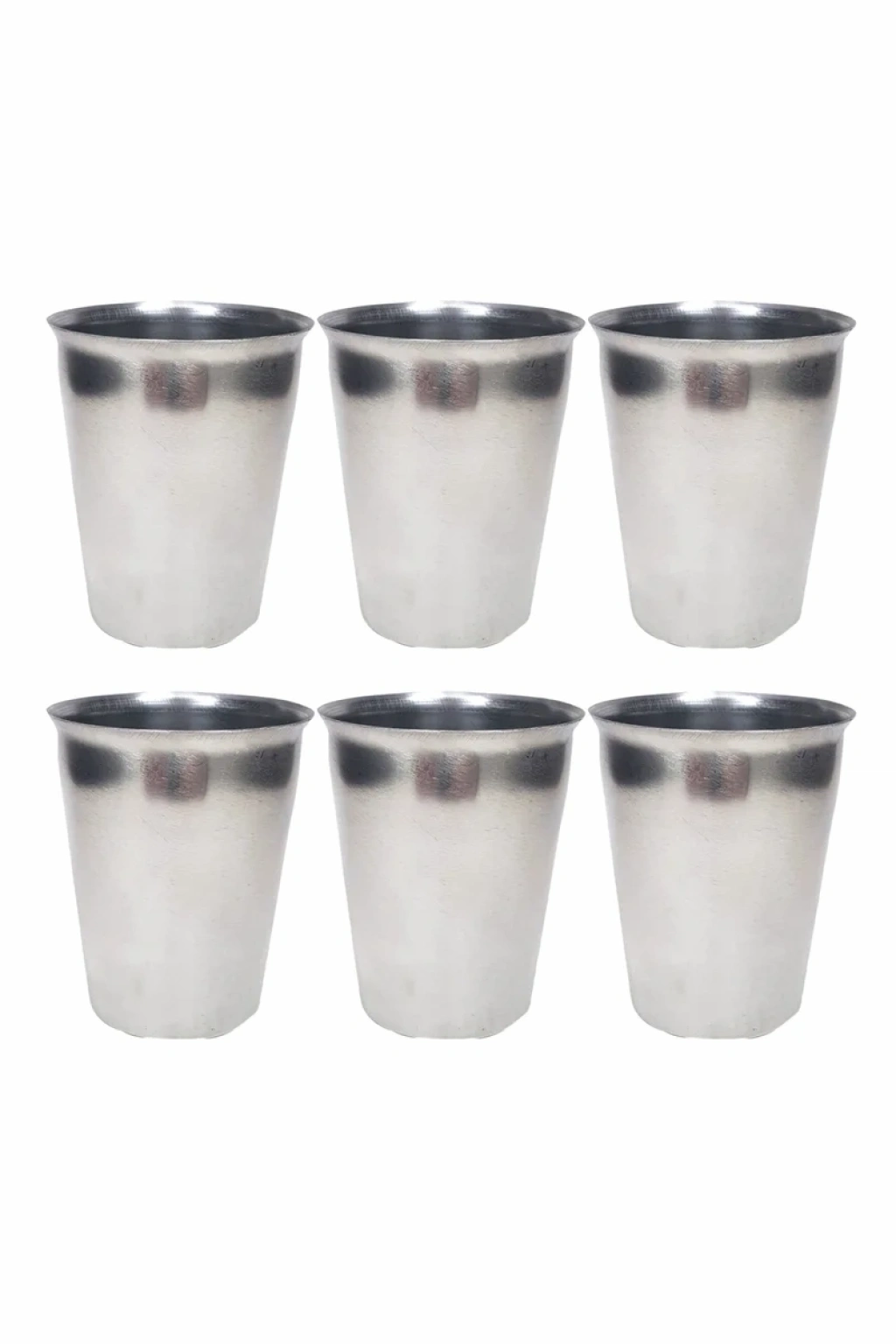 6 Adet Paslanmaz Çelik Krom Bardak 9 x 7,5 x 5,5cm