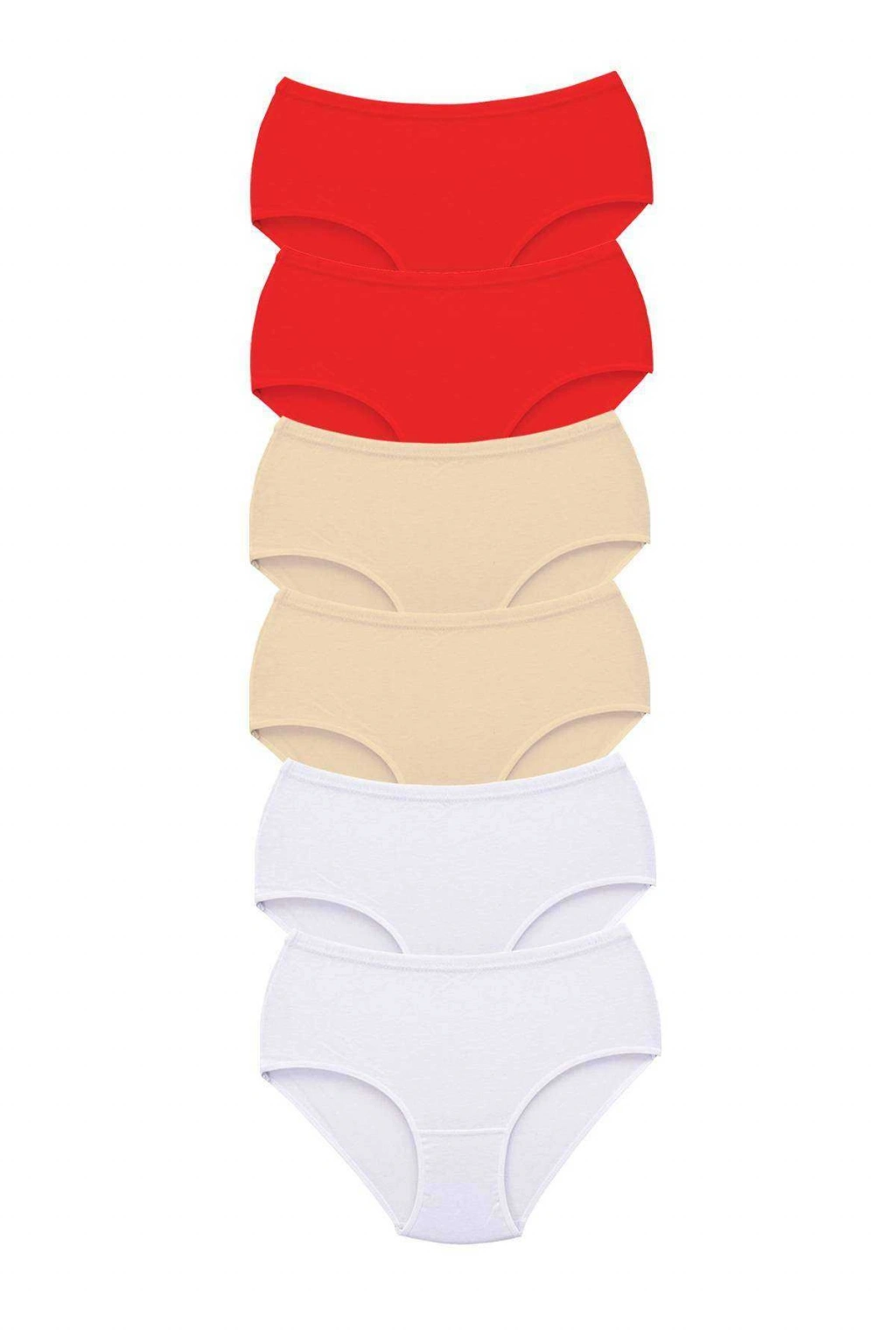 6 Adet Tutku Kadın Yüksek Bel Bato Kalın Lastik Külot Kırmızı Ten Beyaz