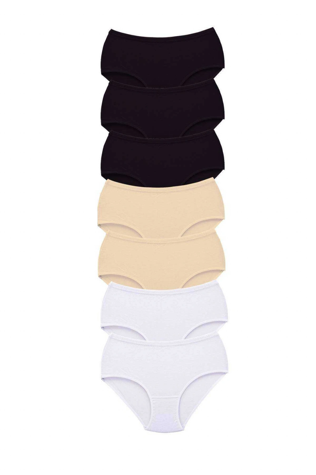 7 Adet Tutku Kadın Yüksek Bel Bato Kalın Lastik Külot Siyah Ten Beyaz