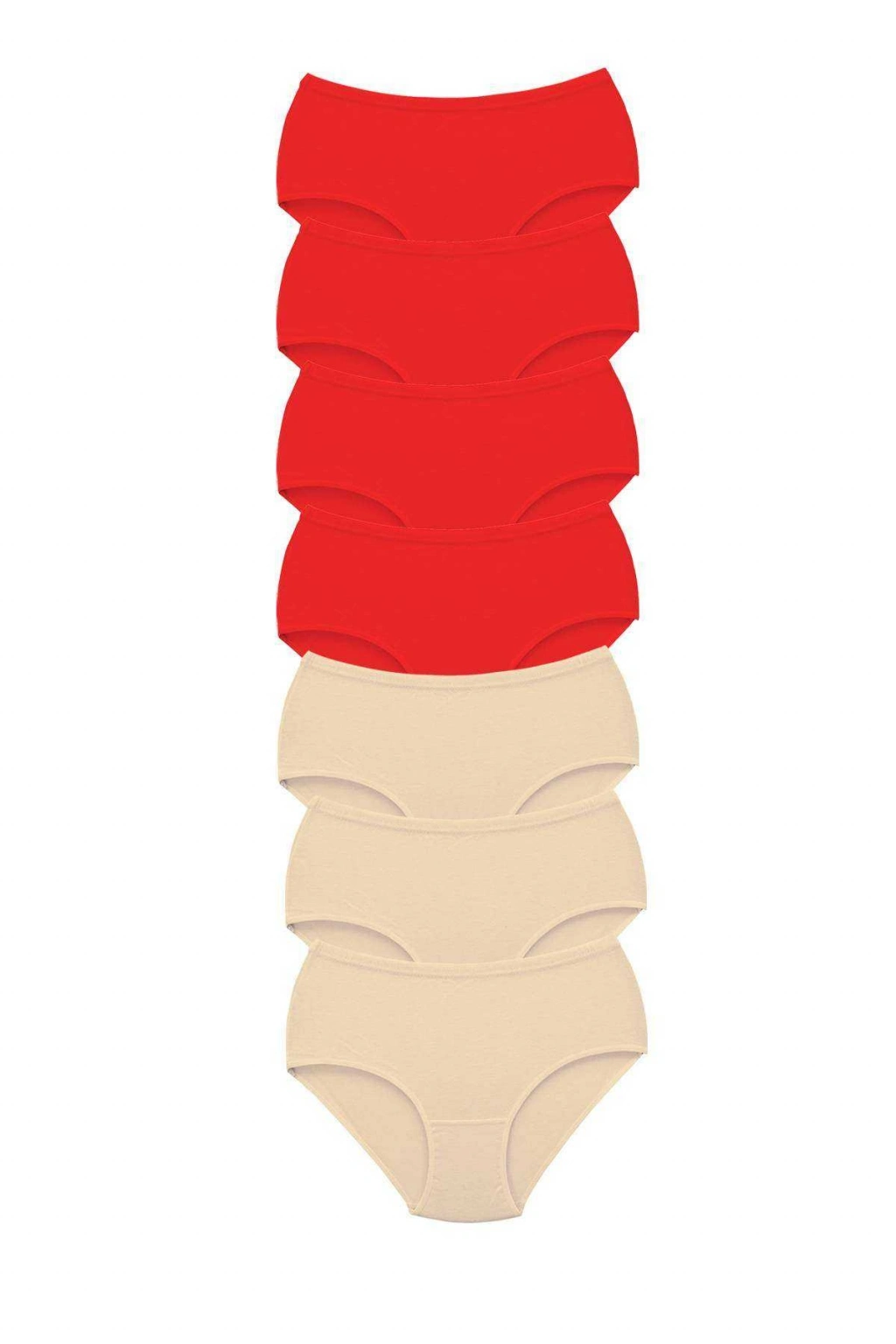 7 Adet Tutku Kadın Yüksek Bel Bato Kalın Lastik Külot Kırmızı Ten