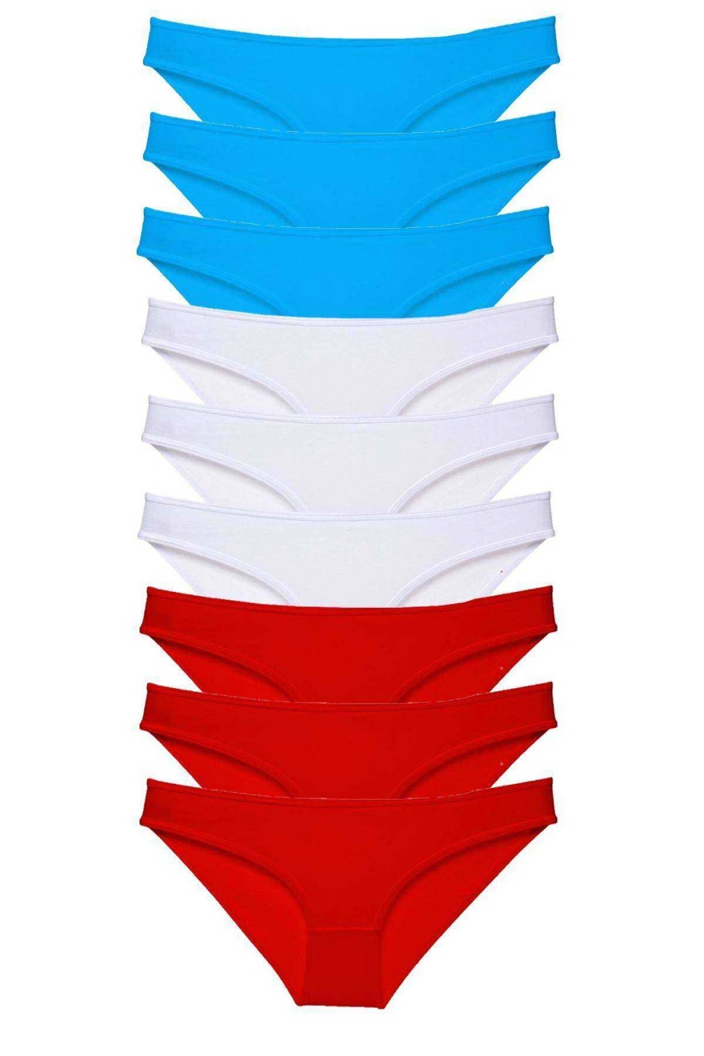 9 adet Süper Eko Set Likralı Kadın Slip Külot Kırmızı Beyaz Mavi