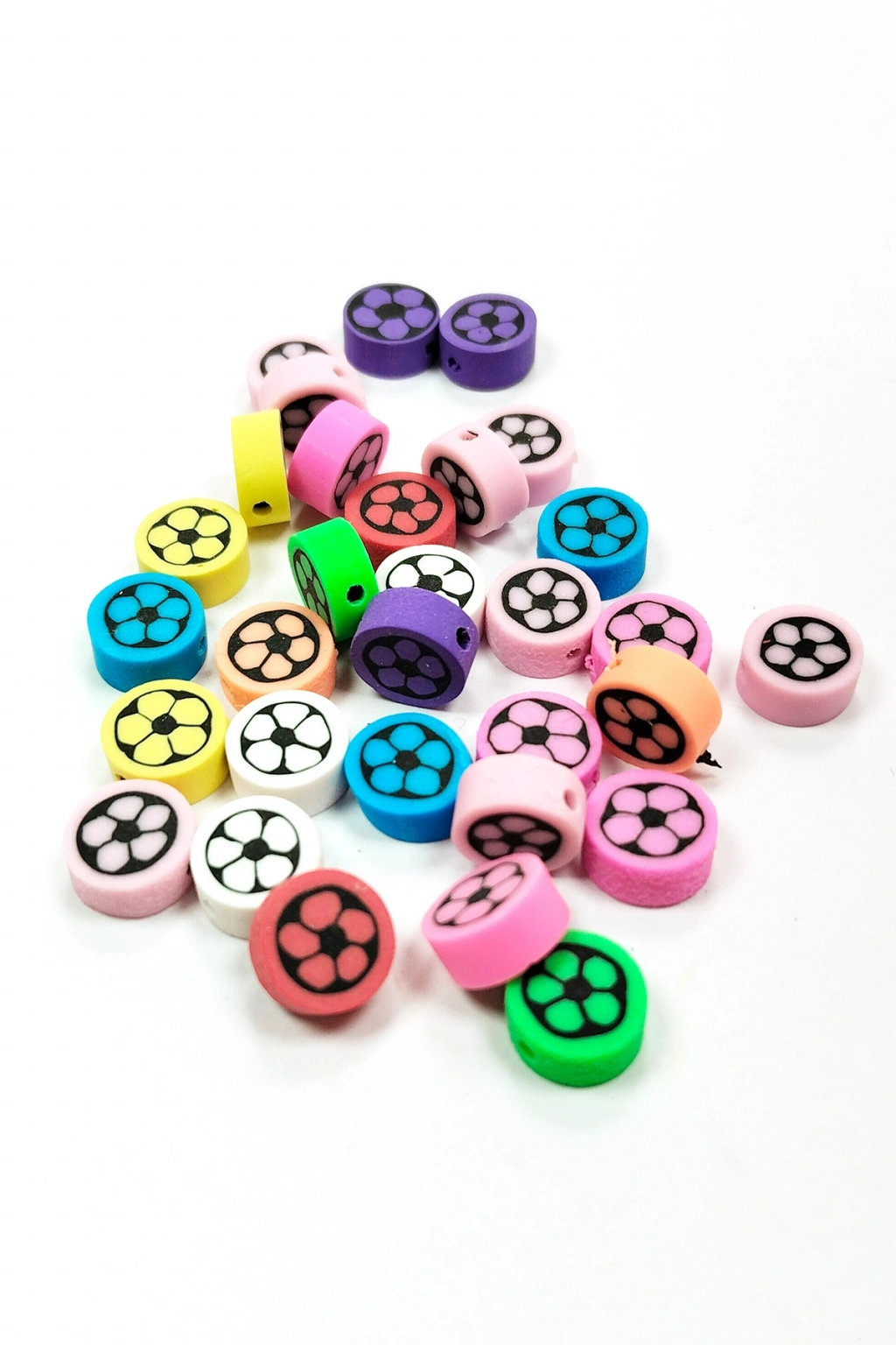 90 Adet 10 mm Polimer Kil Fimo Boncuk Takı Bileklik + 5 Metre Lastikli Misina Hediye - Renkli Çiçek