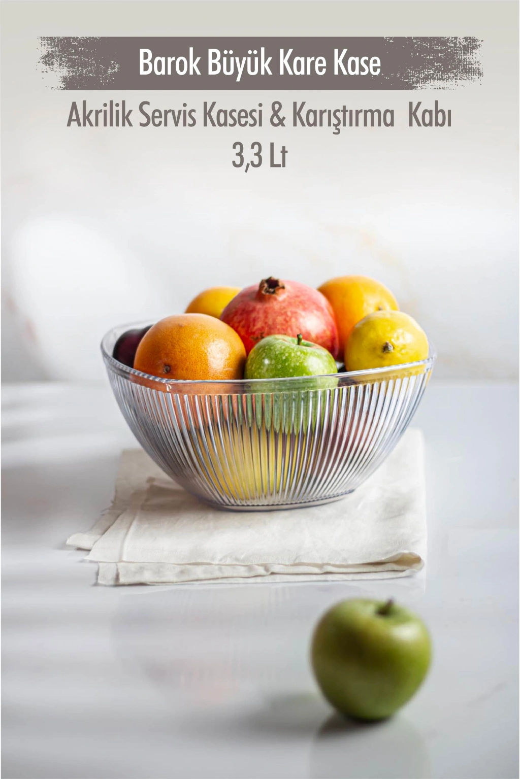Akrilik Barok Şeffaf Büyük Kare Meyve & Salata Kasesi & Karıştırma Kabı / 3,3 Lt (CAM DEĞİLDİR)
