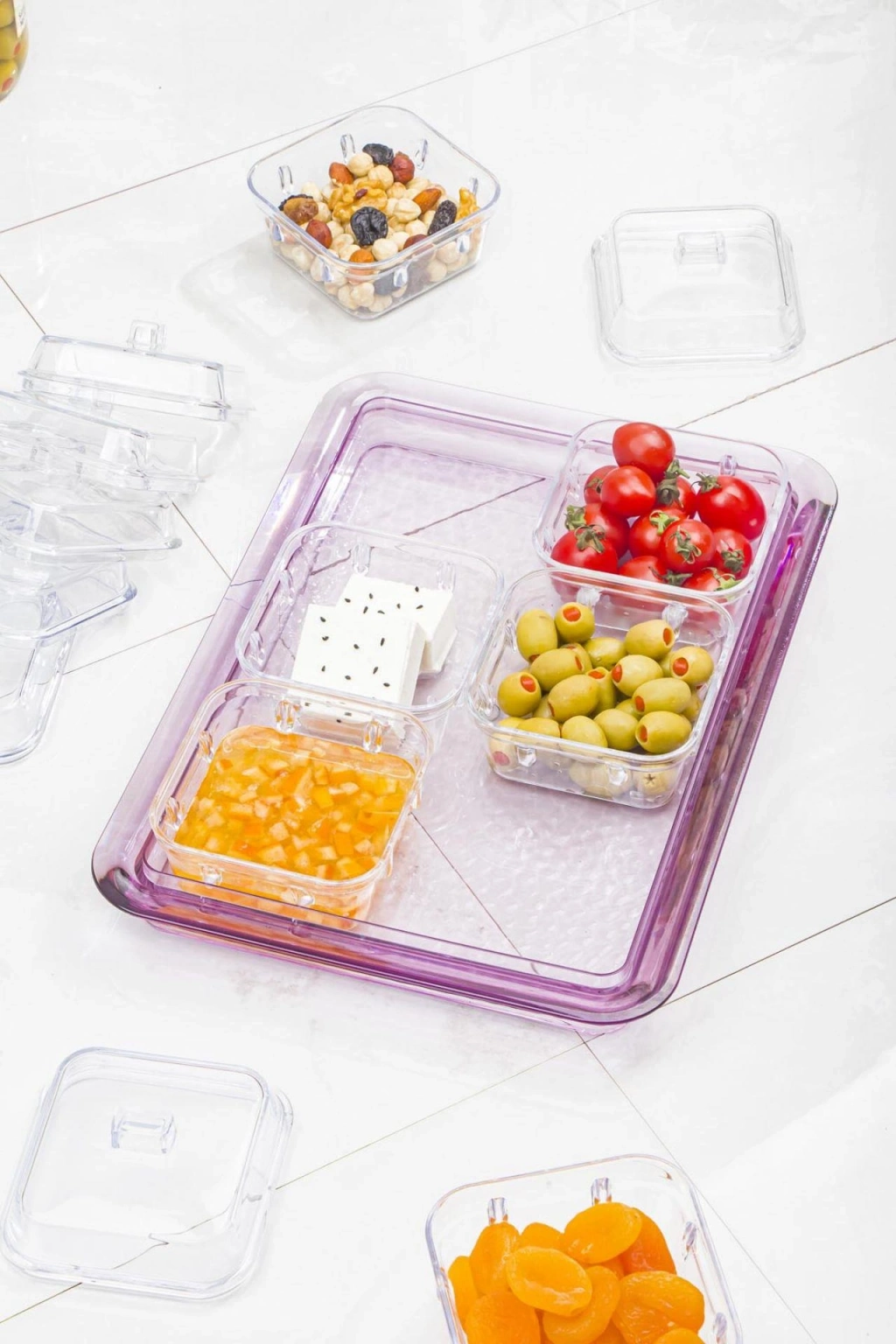 Akrilik Mürdüm 6’lı Kapaklı Kahvaltılık Kahvaltı Seti & Saklama Kabı (Cam Değildir)