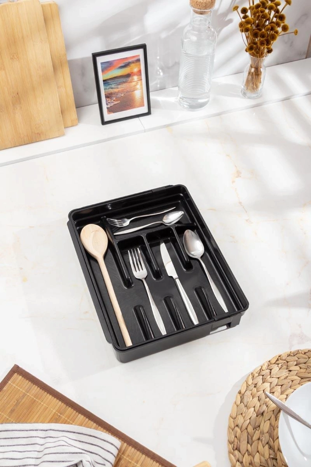 Akrilik Siyah Ayarlanabilir Çekmece İçi Kaşıklık & Çekmece İçi Organizeri (35*28*5 / 35*44*5)