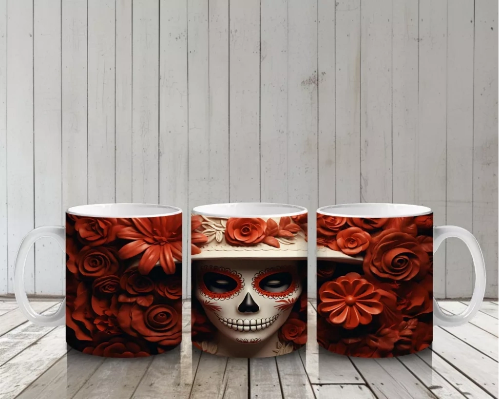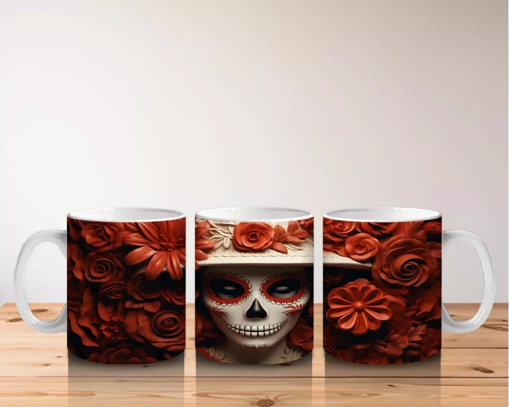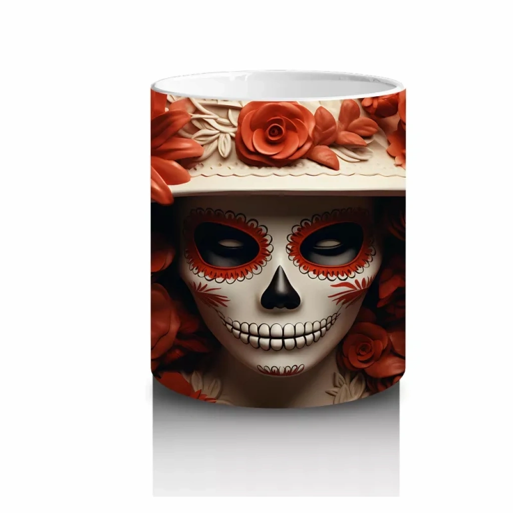 Alev Kırmızısı Saçlar ve Beyaz Maske – Hediyelik Kahve Kupası Yoğun kırmızı saçlarla çevrili beyaz maskesiyle bu Cadılar Bayramı baskılı kupa, güçlü ve çarpıcı bir ifade sunar. Tarz sahibi bir hediyelik kahve kupası arayanlara özel tasarlandı.