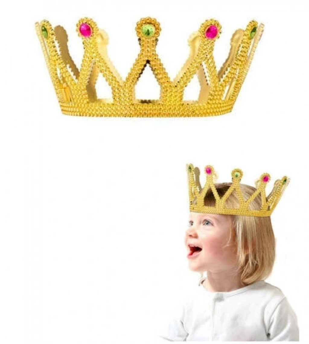 Altın Renk Çocuk Ve Yetişkin Uyumlu Kraliçe Tacı Prenses Tacı 8x25 Cm