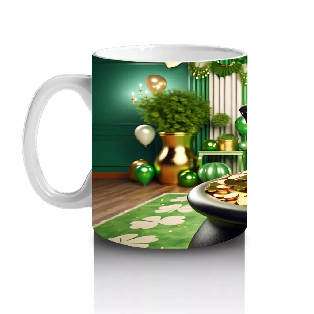 Altınlarla dolu kazanın içinde duran St. Patrick’s temalı Doberman figürü, güçlü ve şans dolu bir atmosfer yaratıyor. Cesur ve özgün tasarımlar sevenler için ideal.
