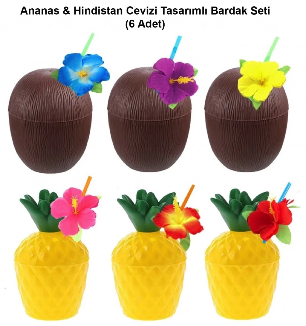 Hawaii ruhunu partinize taşıyın Bu tropikal temalı kokteyl bardak seti, eğlenceli içecek sunumlarınız için mükemmel bir seçim Hindistan cevizi ve ananas tasarımıyla özel olarak tasarlanmış bardaklar, misafirlerinize egzotik bir deneyim sunar.