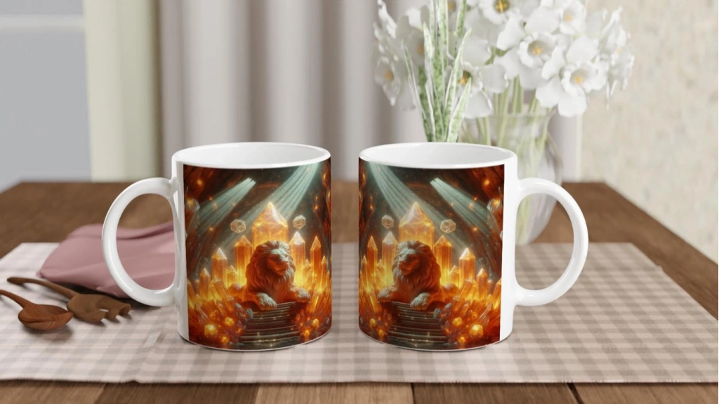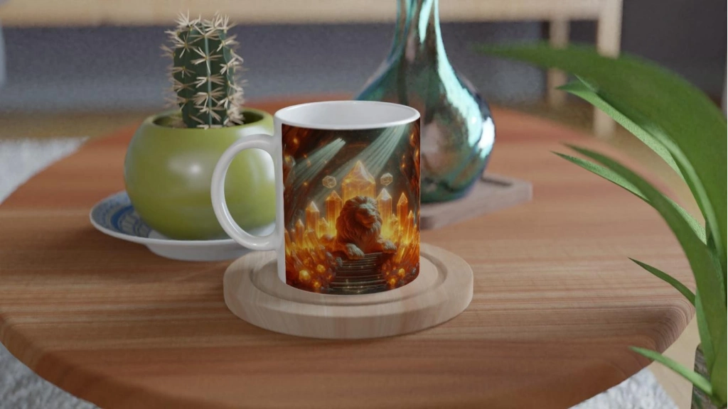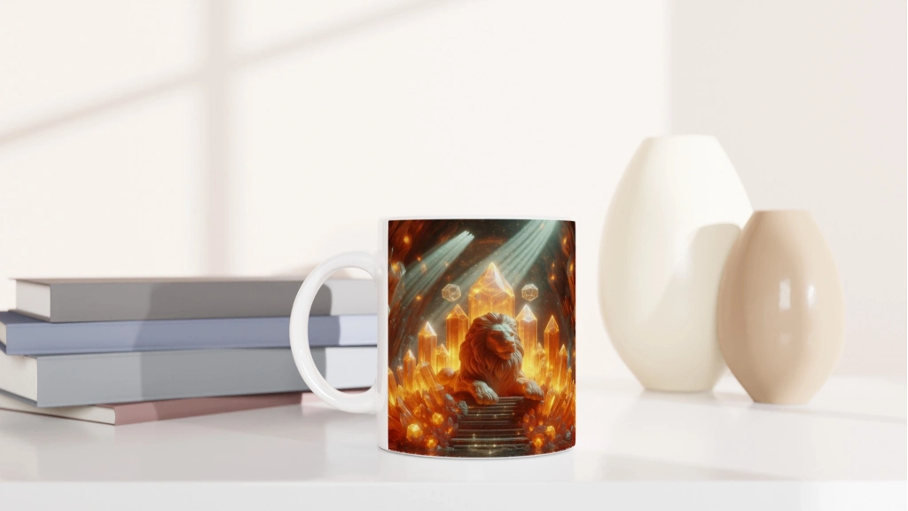 Aslan Burcu Baskılı Kahve Kupası - Büyülü Kristal Mağarası Temalı Vs3