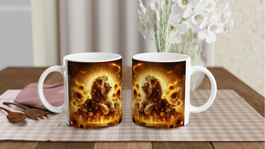 Parlak enerjisiyle dikkat çeken Aslan burcu için hazırlanan bu elementsel doğa krallığı temalı kupa, ateş elementinin ihtişamıyla her yudumda kendinizi taçlandırmanızı sağlar.