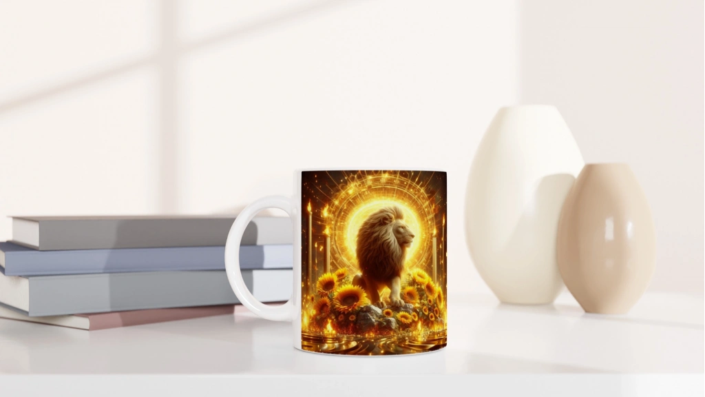 Cesaret, gurur ve ışıltı… Aslan burcunun asil ruhu bu elementsel doğa krallığı tasarımında hayat buluyor. Her kahve molası sizin sahneniz!