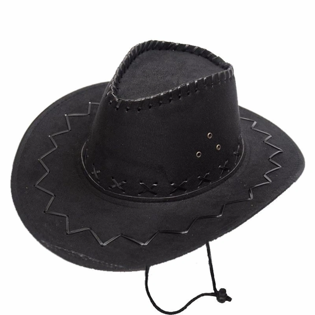• Bağcıklı Çocuk Boy Nubuk Süet Kovboy Şapkası Siyah Renk