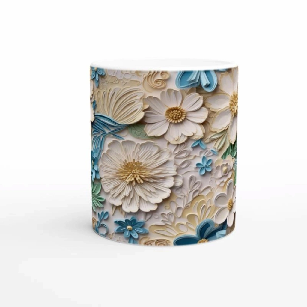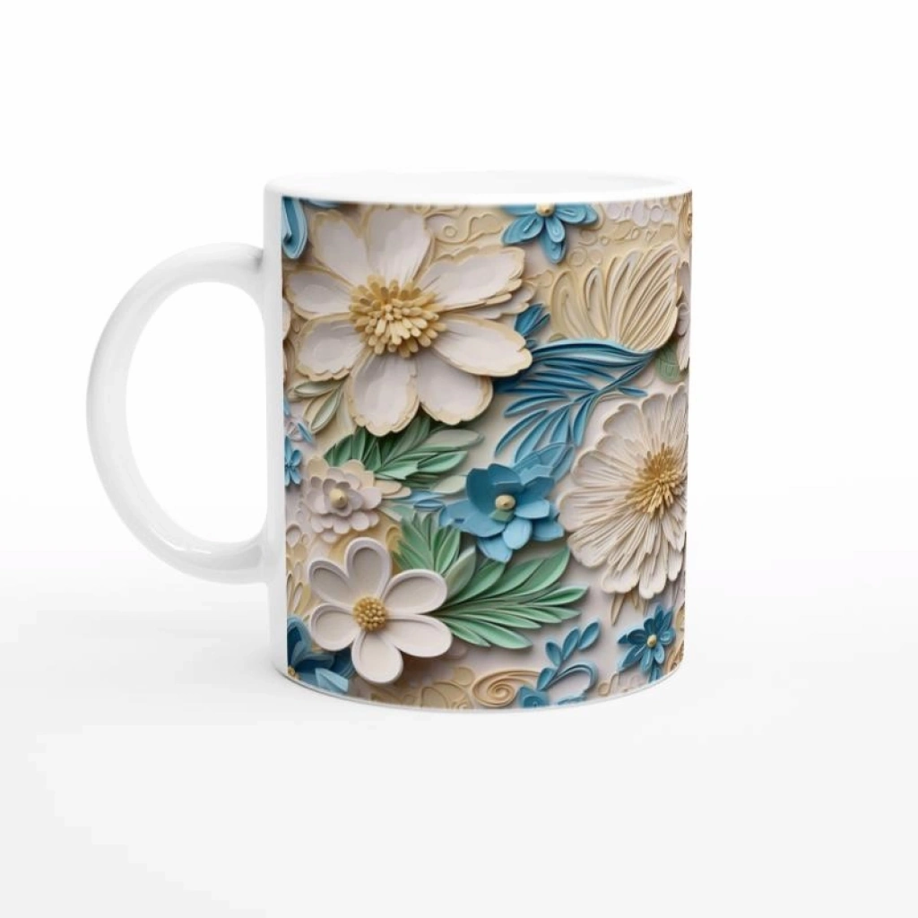 Baharı Fısıldayan Kağıt Çiçekli Kupa Bardak, 3D etkili zarif çiçek desenleriyle estetik ve doğal bir stil sunar.