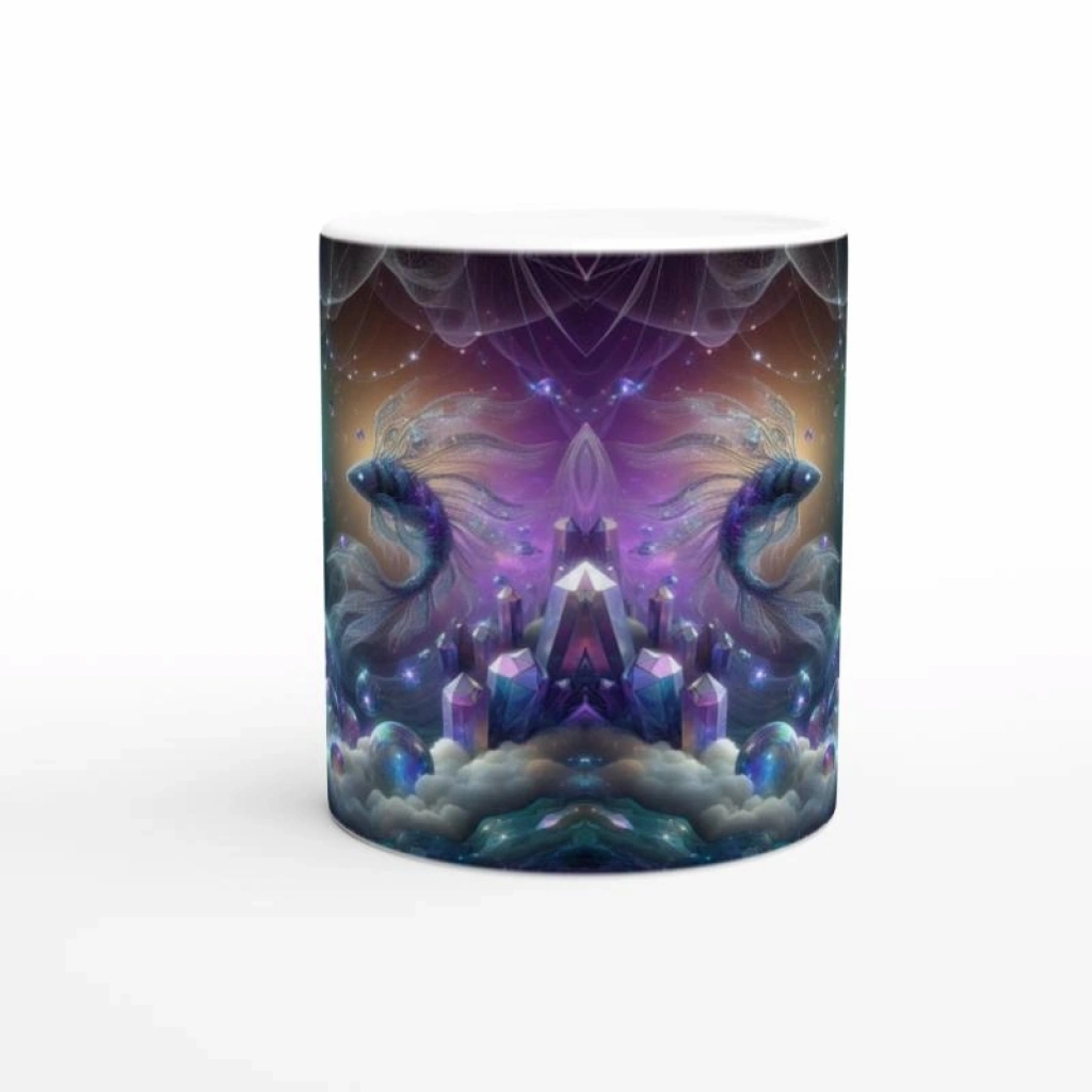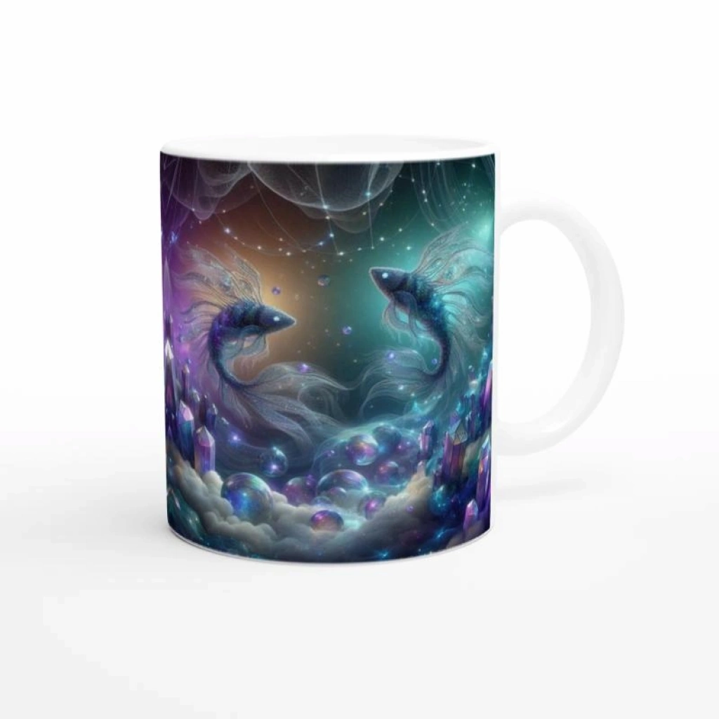 Balık Burcu Baskılı Kahve Kupası - Büyülü Kristal Mağarası Temalı Vs3