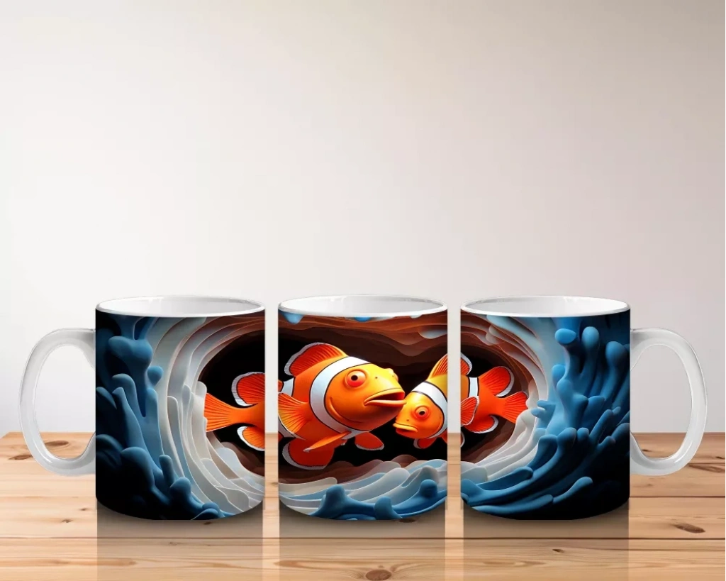 Baloncuklar eşliğinde dans edercesine yüzen palyaço balıkları, enerjik ve eğlenceli bir atmosfer yaratıyor. Canlı ve pozitif tasarımlardan hoşlananlara ideal bir kupa alternatifi.