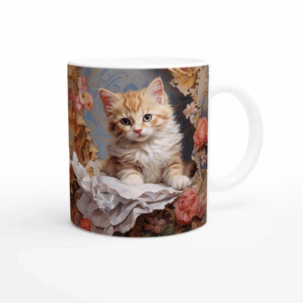 Barok Çiçekler Arasında Sevimli Kedi Kupa Bardak, detaylı çiçek kompozisyonları ve bakışlarıyla kalpleri fetheden minik kedisiyle hem hayvanseverleri hem sanat tutkunlarını cezbediyor. Kupa koleksiyonlarına nostaljik ve zarif bir parça olarak eklenebilir.
