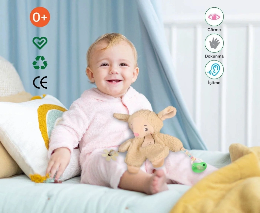 Özel tasarım kumaşıyla bebeklerin dokunuşlarında rahatlık ve güven hissi sunar.