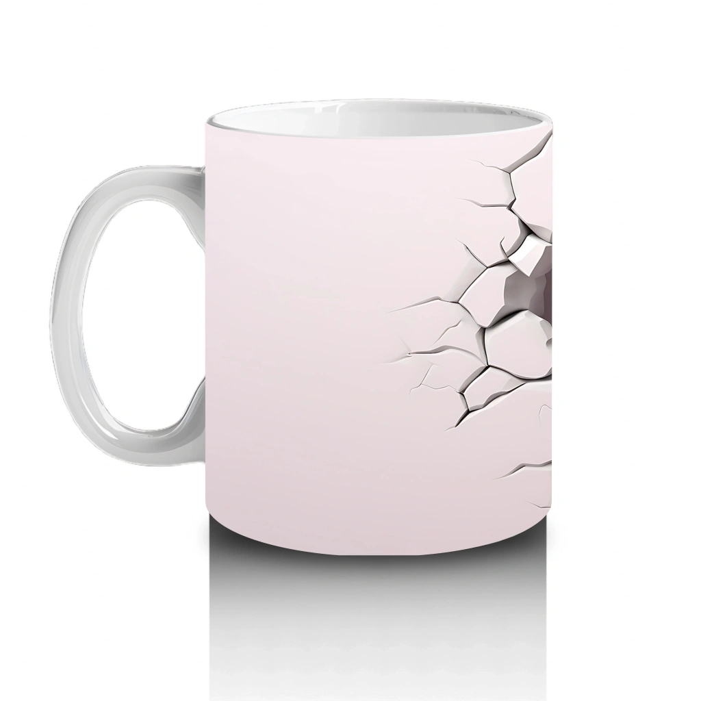 Beyaz çatlak duvarın arasından süzülen pembe yusufçuk, zarif ve romantik bir atmosfer yaratıyor. Doğal ve feminen detayları sevenler için özel bir kupa tasarımı.