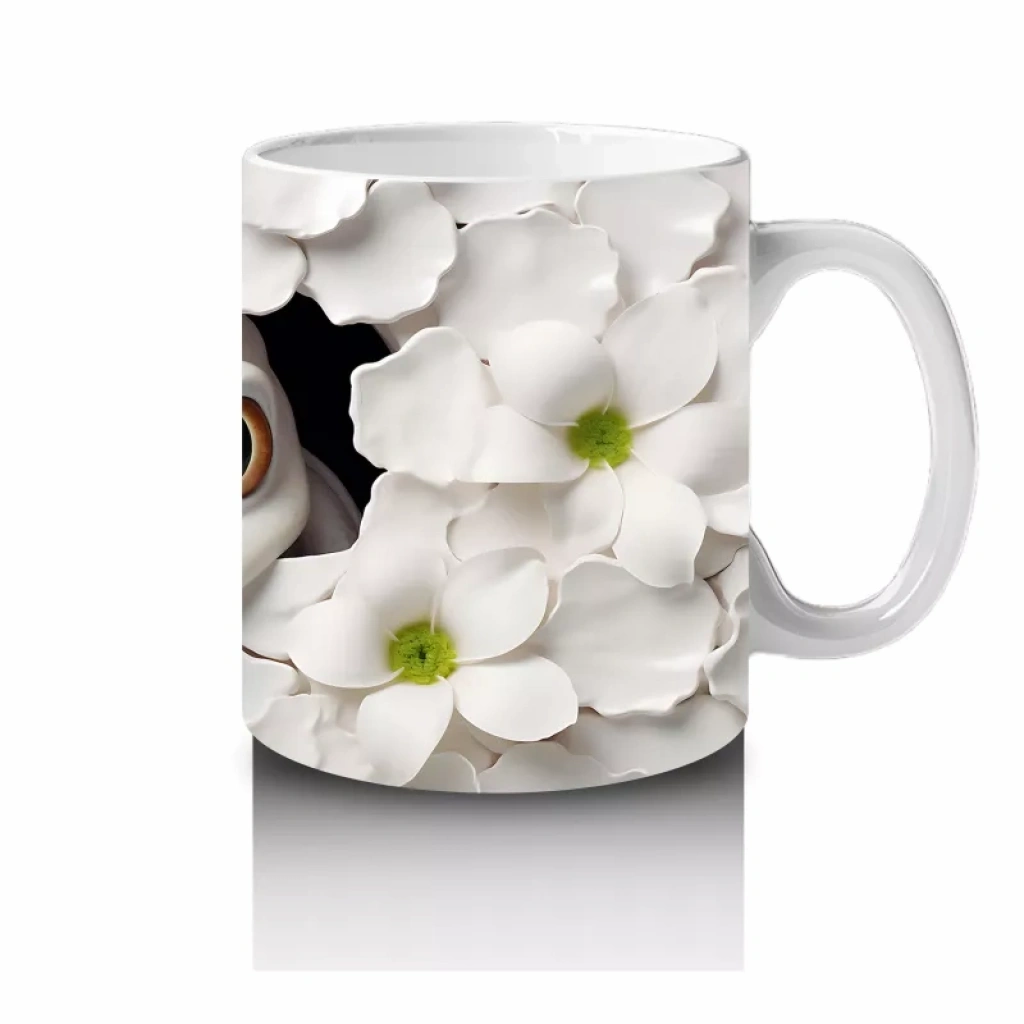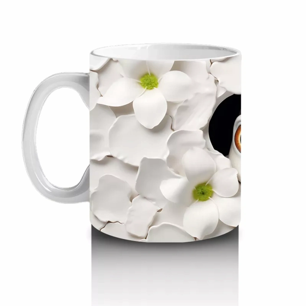 Beyaz Çiçekler Arasında Tarsier – Baskılı Kahve Kupası