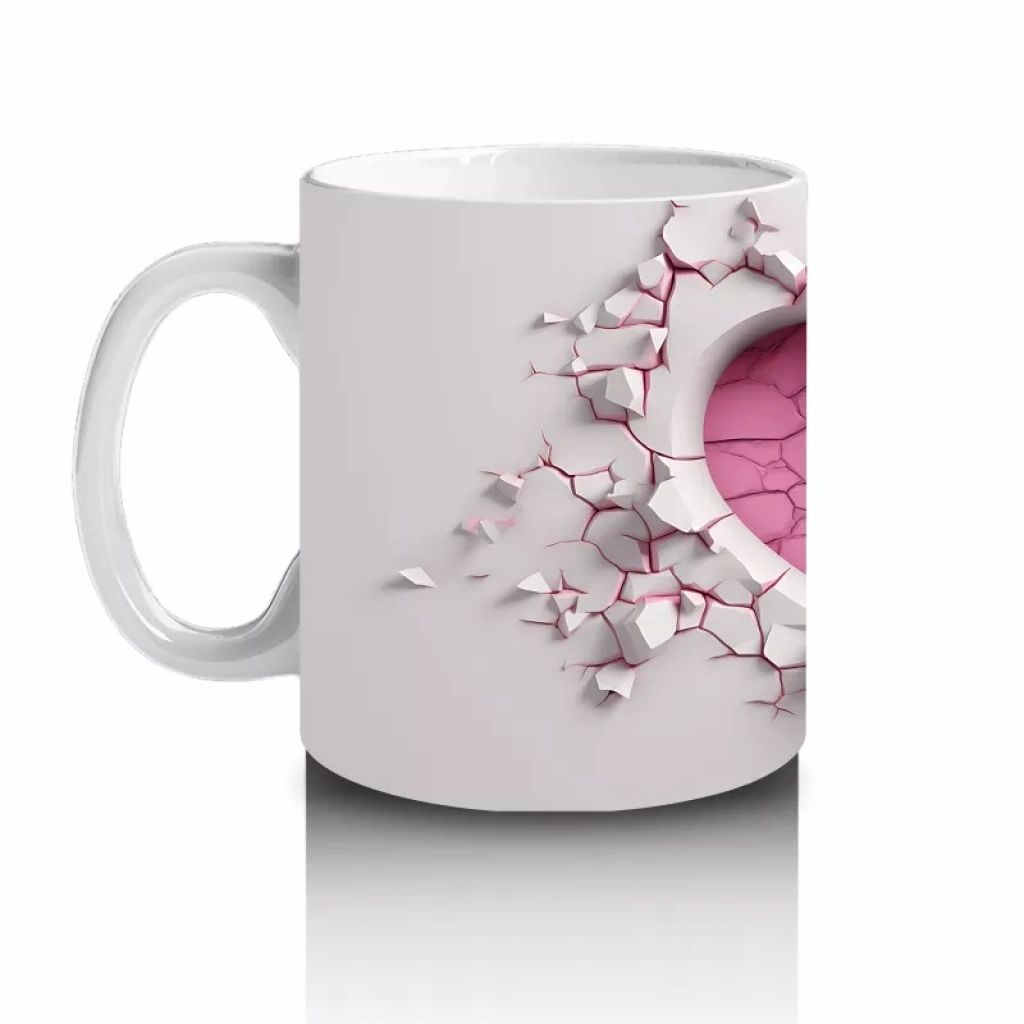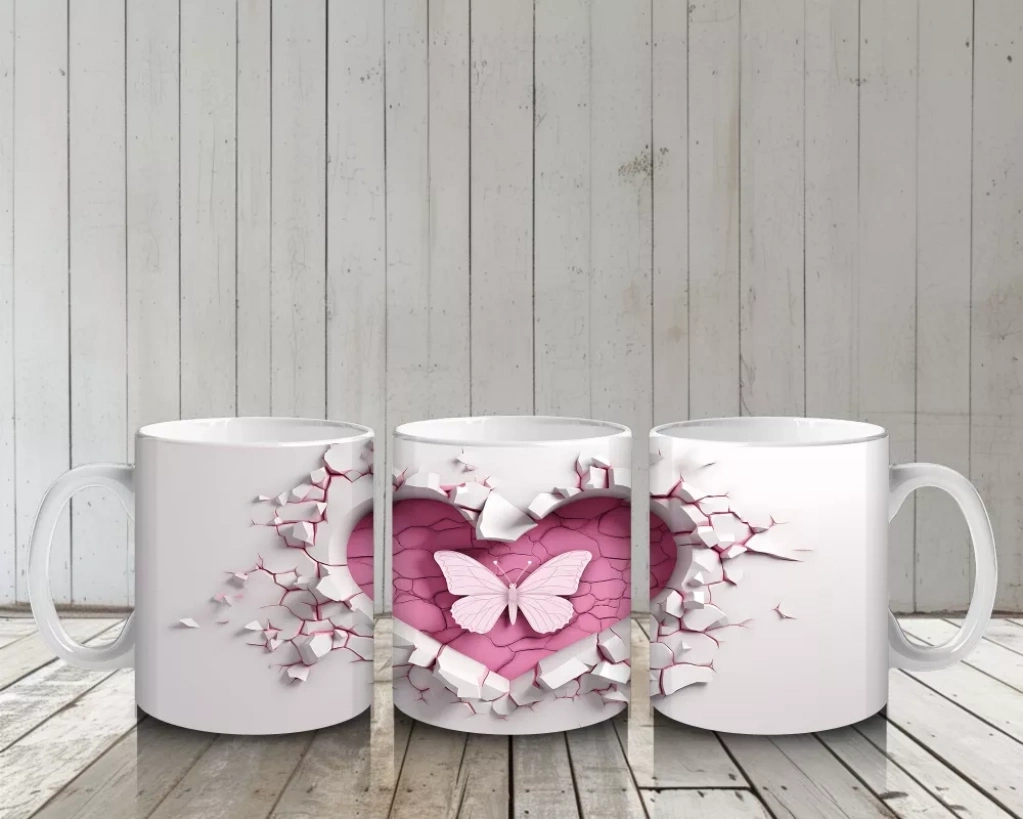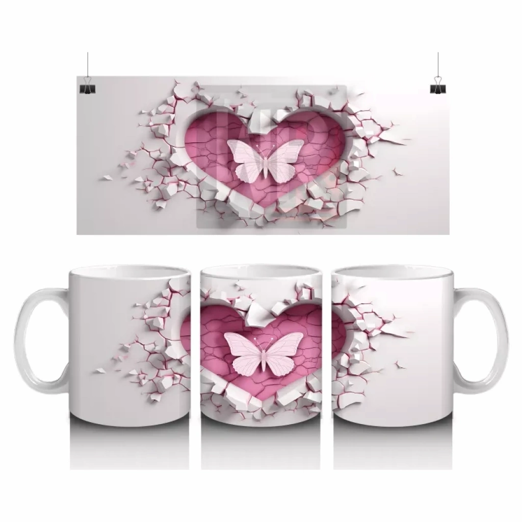 Beyaz çiçeklerin üzerinde yer alan kalp sembolü, saf sevgi ve zarafeti yansıtıyor. Romantik ve huzur dolu tasarımlar arayanlar için özel bir kupa.