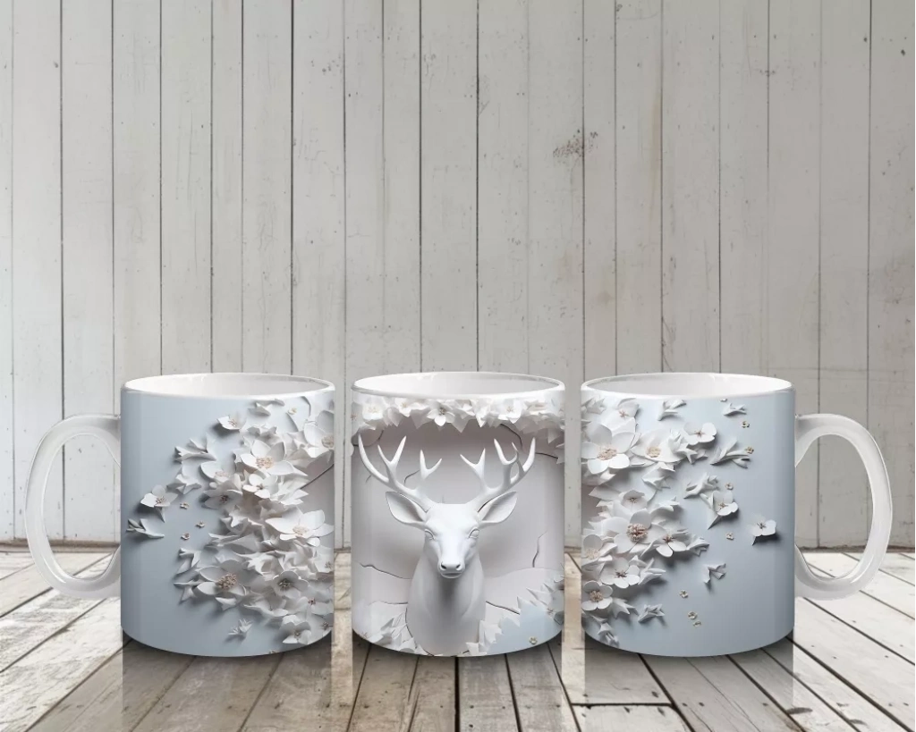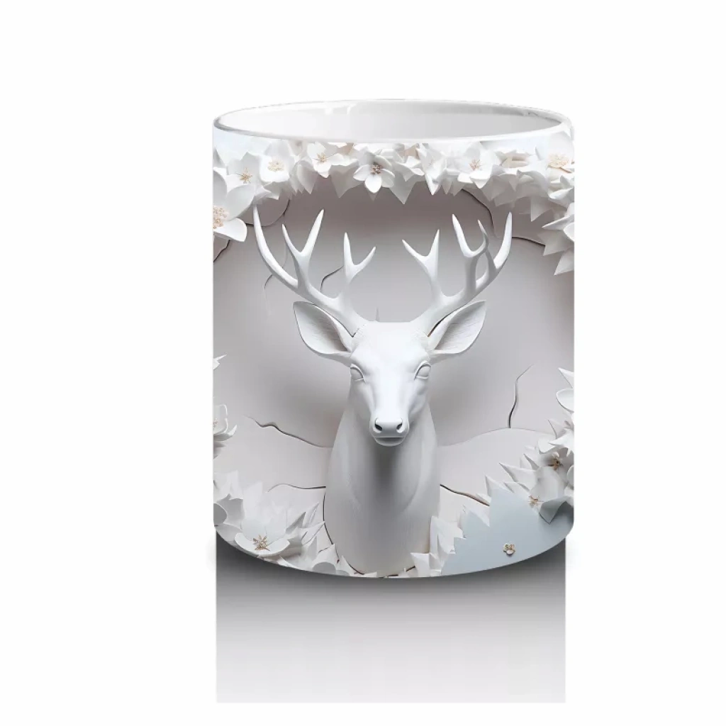 Beyaz çiçekler ve ince dallar arasında beliren zarif geyik figürü, doğallığı ve dinginliği temsil ediyor. Şıklığı doğadan ilham alan dekoratif kupa arayanlar için ideal bir model.