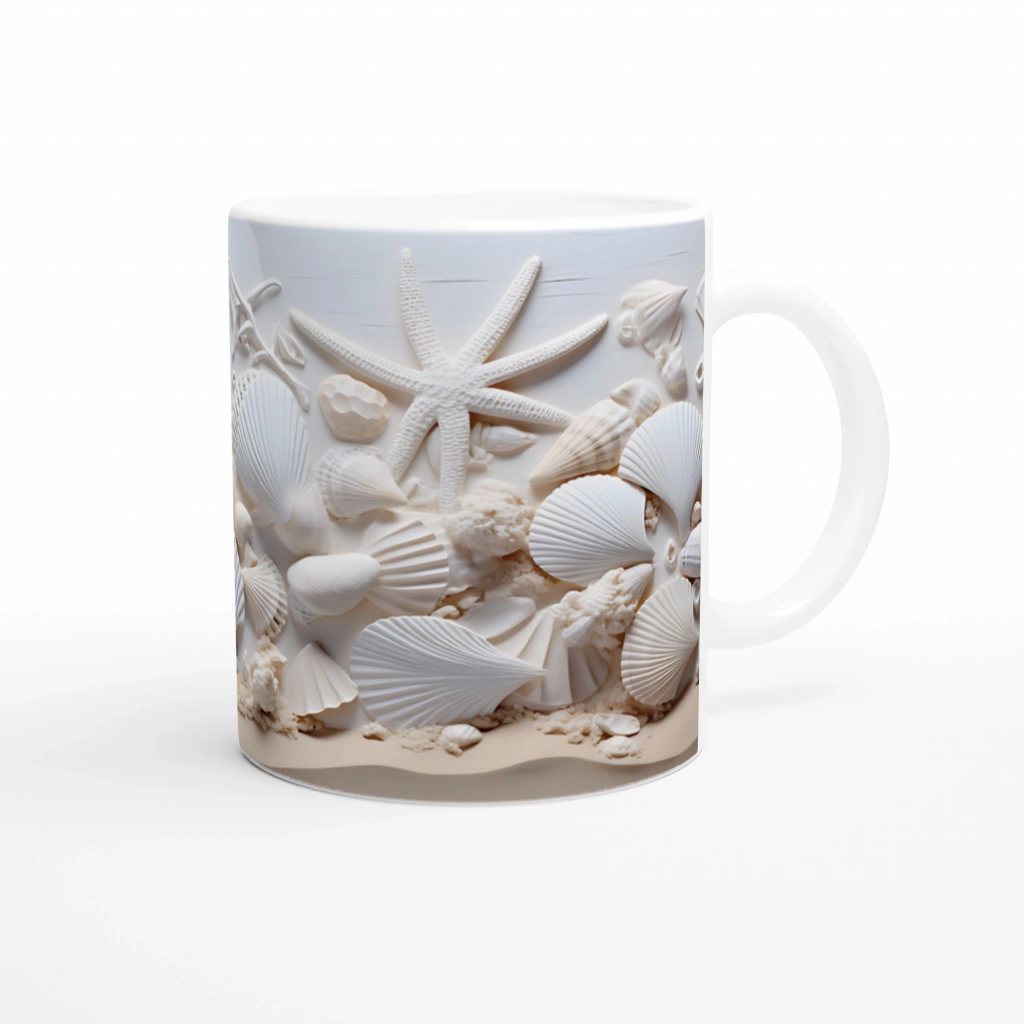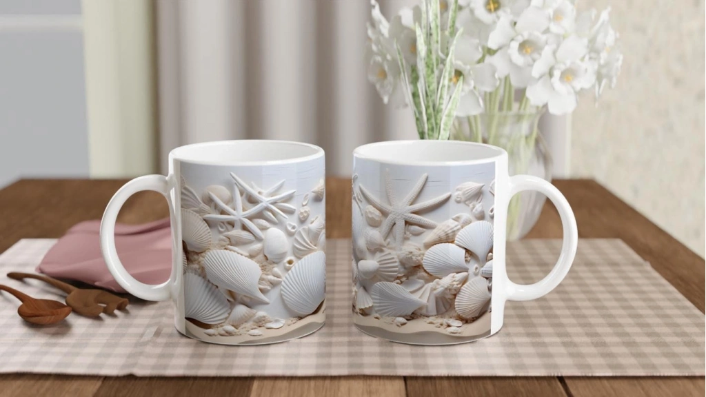 Beyaz Deniz Kabuğu Koleksiyonu Kupa Bardak, sahil esintisini evinize taşıyan zarif detaylarıyla minimal ve estetik sevenlere özel üretildi.