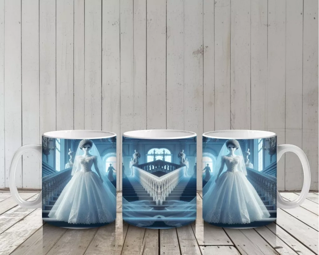 Beyaz Elbiseli Hayalet Gelin Figürlü Sisli Cadılar Bayramı Baskılı Kupa