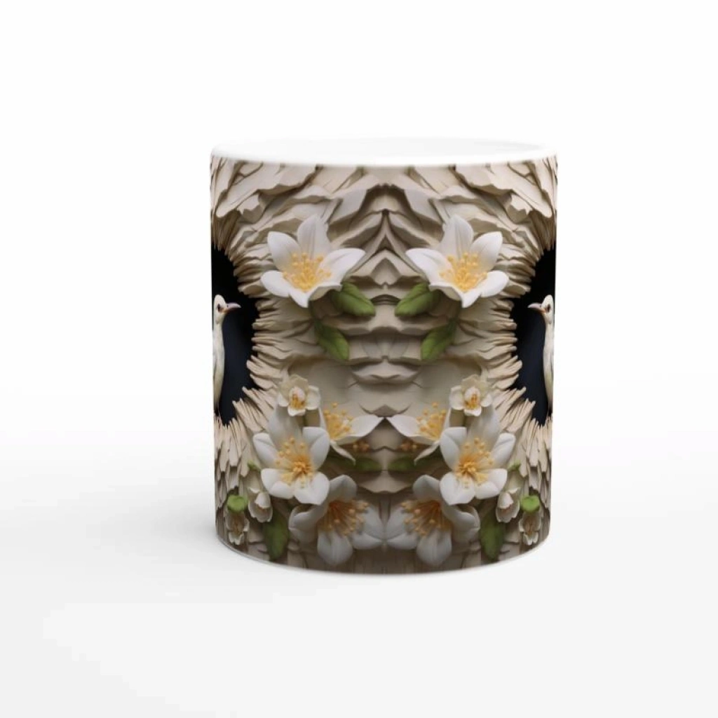 Beyaz Kuş ve Yasemin Çiçeği Kupa Bardak