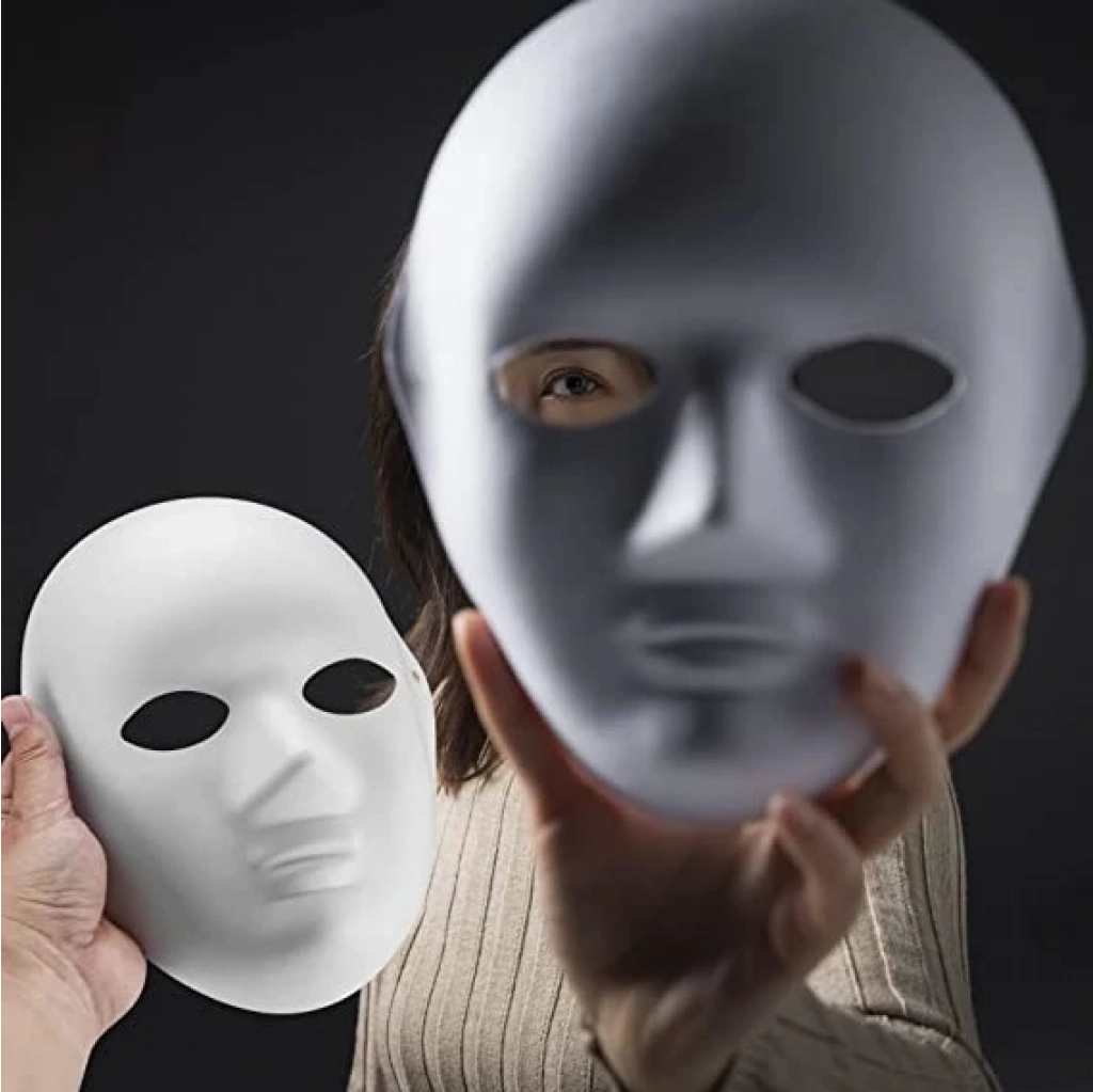 Beyaz Renk Boyanabilir Anonim Tam Yüz Cosplay Maske 24x18 Cm