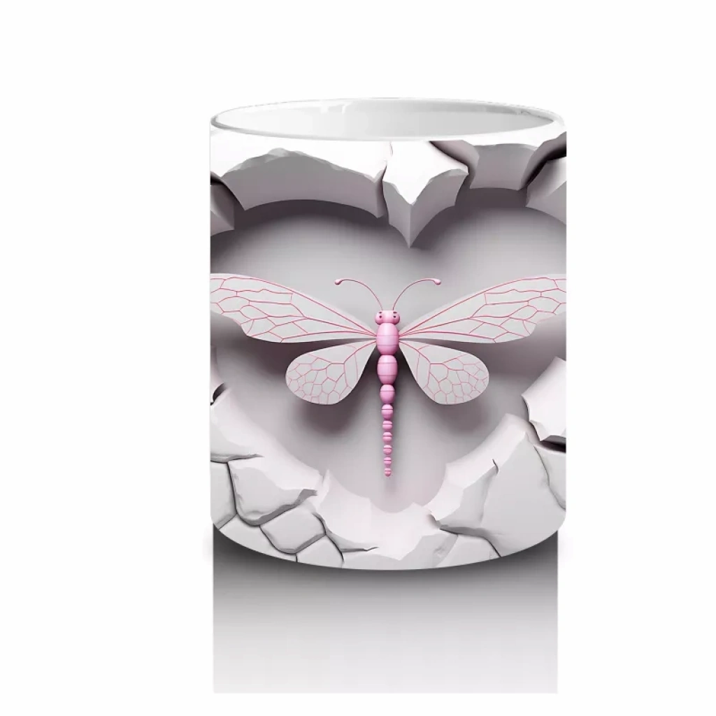 Beyaz Tuğla Üzerinde Pembe Yusufçuk – Baskılı Kahve Kupası