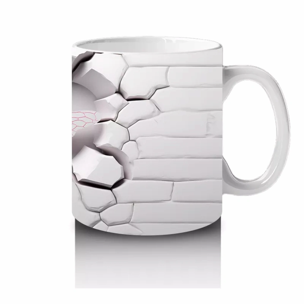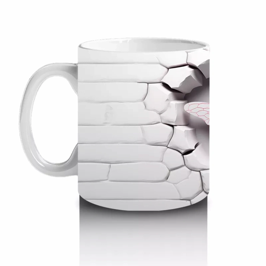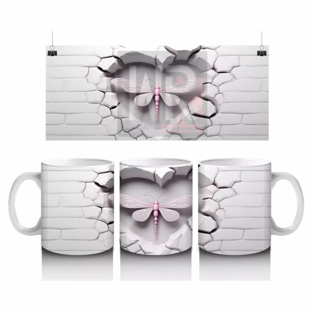 Beyaz Tuğla Zemin Üzerinde Simetrik Yusufçuk – Baskılı Kahve Kupası