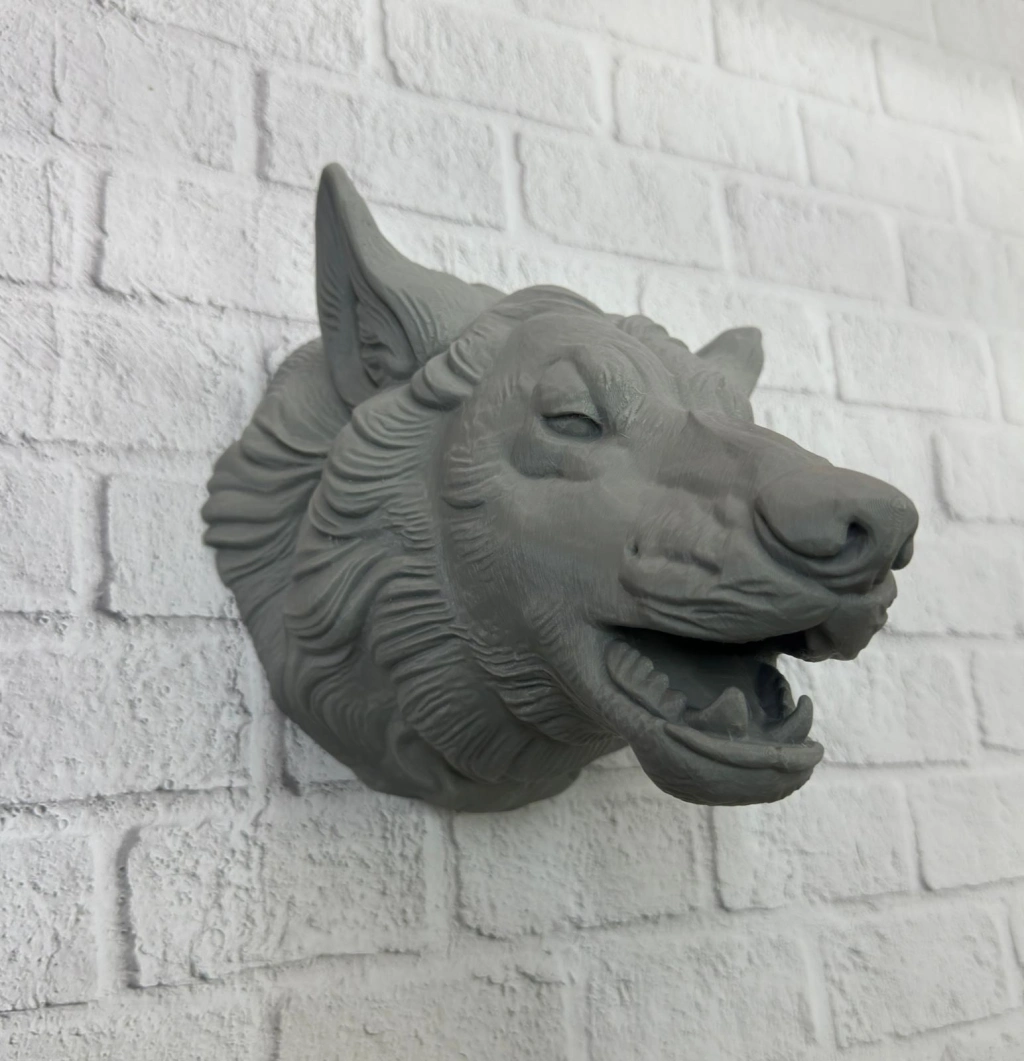 BFS Asılabilir Gri Kurt Heykeli Ev Ofis Duvar Süslemesi Dekoratif