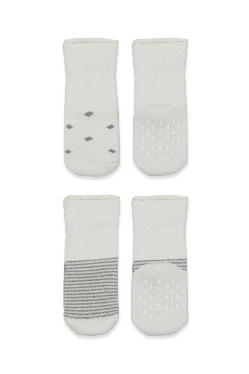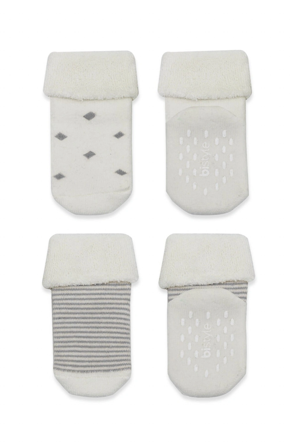 Bistyle 2'Li Havlu Soket Kaymaz Çorap 10504 Gri Ekru