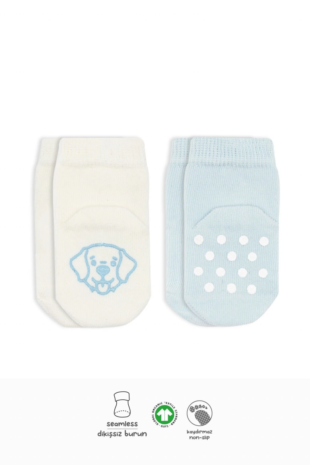 Bistyle 2'Li Hayvan Figürlü Kaymaz Soket Çorap 10104 Mavi Ekru