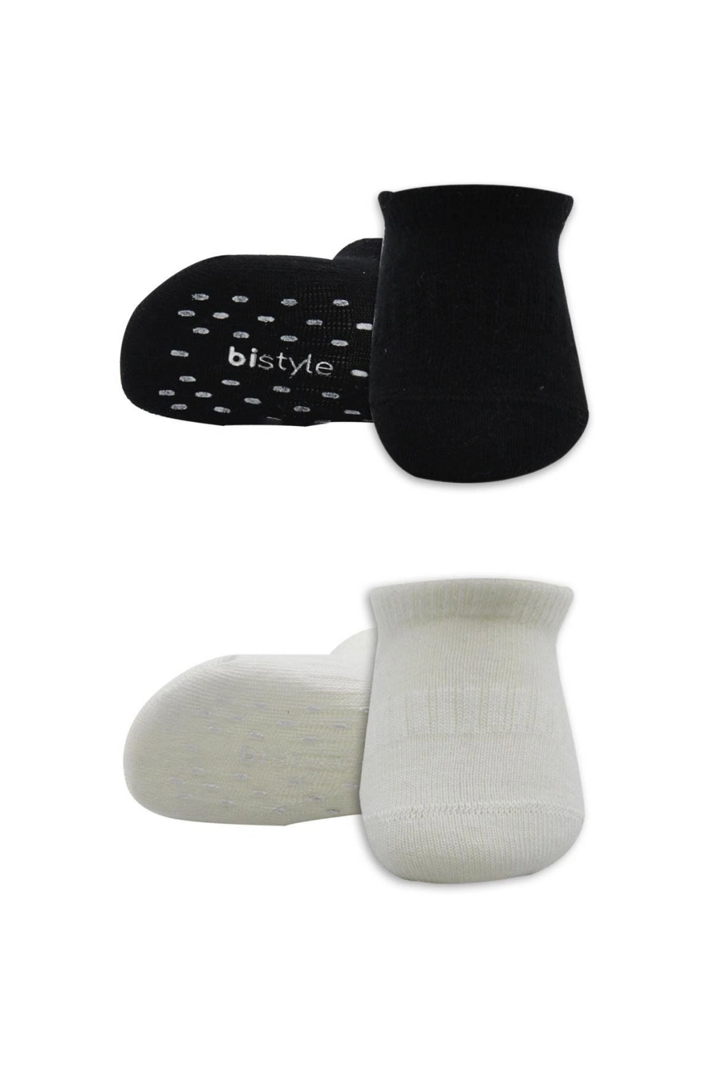 Bistyle 2'Li Sneakers Kaymaz Basic Penye Çorap BS20103 Siyah Ekru