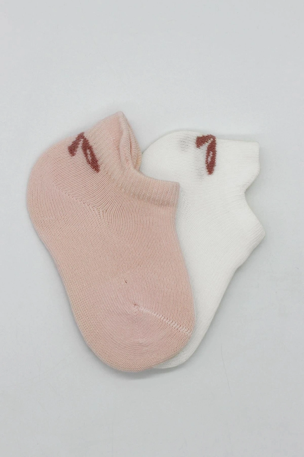 Bistyle 2'Li Sneakers Smile Penye Çorap BS20106 Pembe Ekru