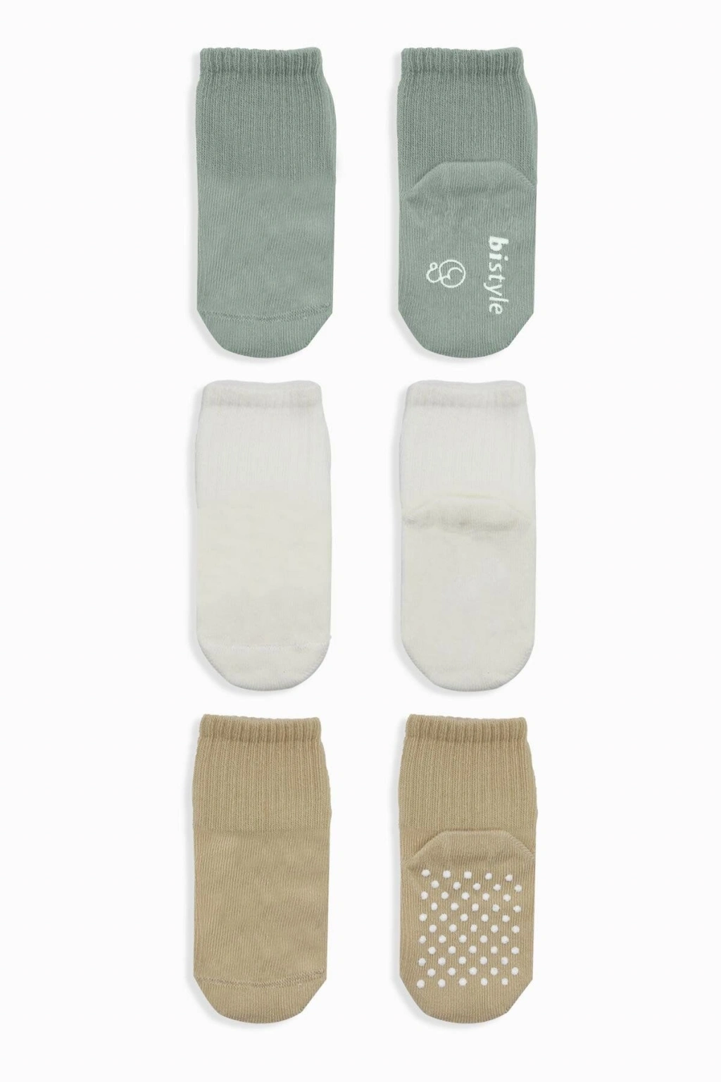 Bistyle Basic Kaymaz Penye Soket Çorap 3'Lü BS10107 Nil Ekru Bej