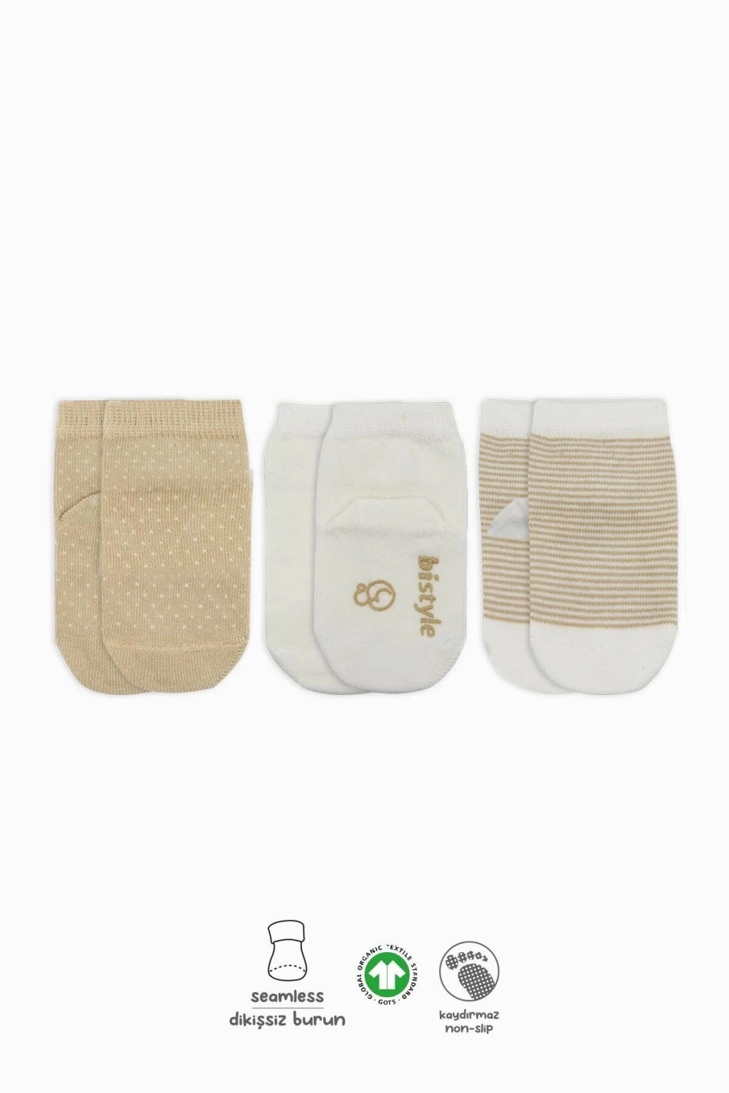 Bistyle Puanlı Kaymaz Penye Soket Çorap 3'Lü BS10108 Bej