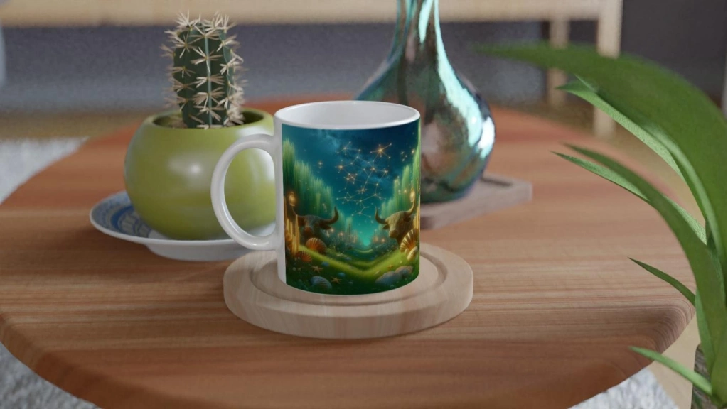 Toprak burcunun sakinliğini, su altının zarafetiyle buluşturan bu özel tasarım, Boğa burcunun içsel huzurunu yansıtır. Keyifli bir kahve ritüeli sizi bekliyor.