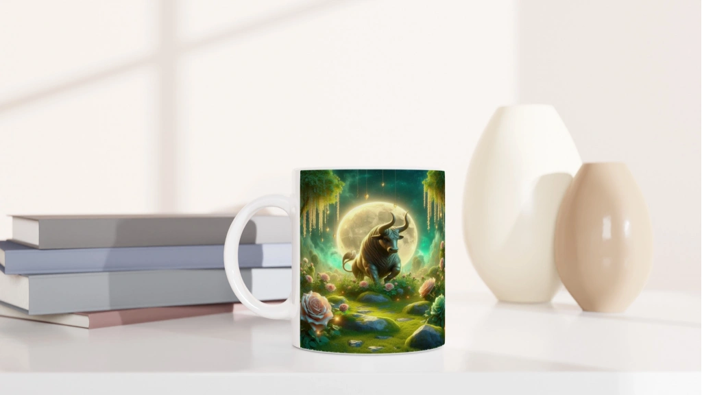 Boğa Burcu Baskılı Kahve Kupası - Ay ışığında Zodyak Bahçesi Vs1