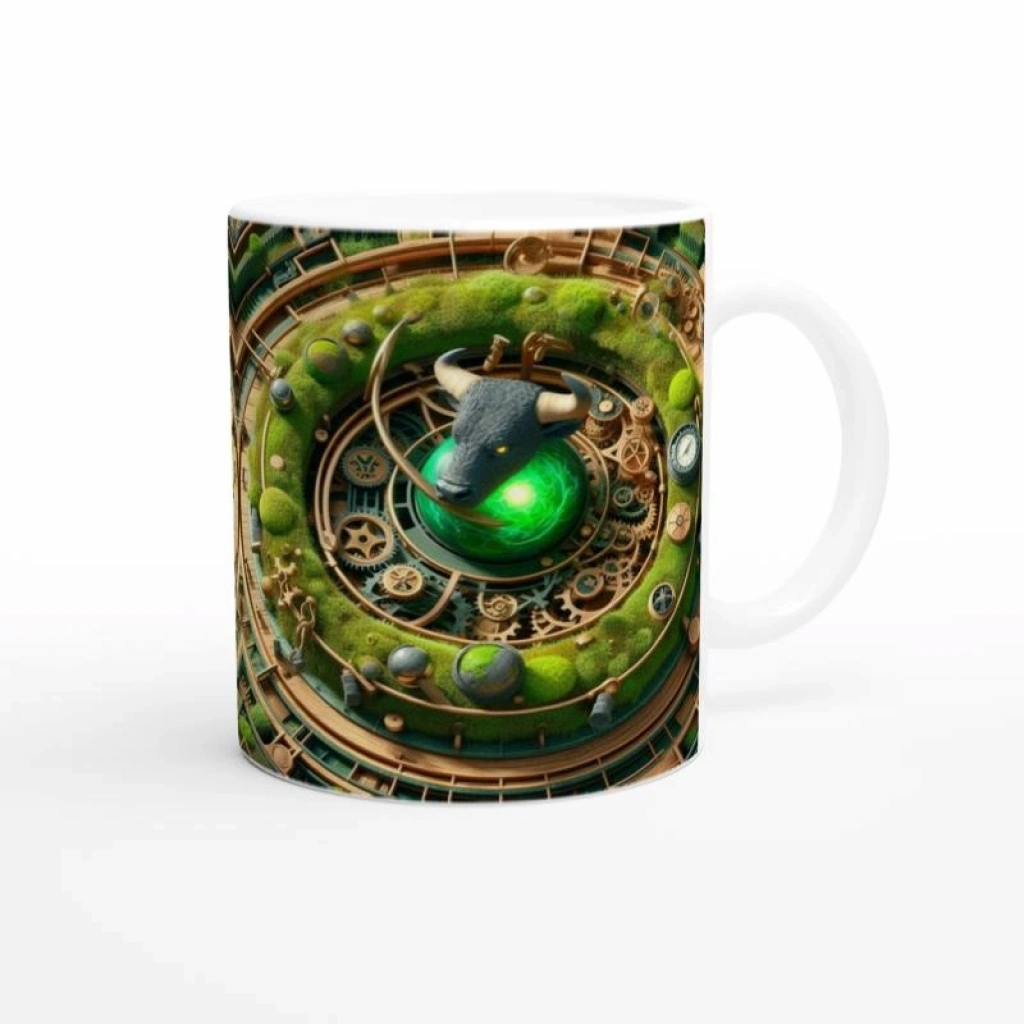 Boğa Burcu Baskılı Kahve Kupası - Zamanın Çarkları Astroloji Mekanizması Vs1