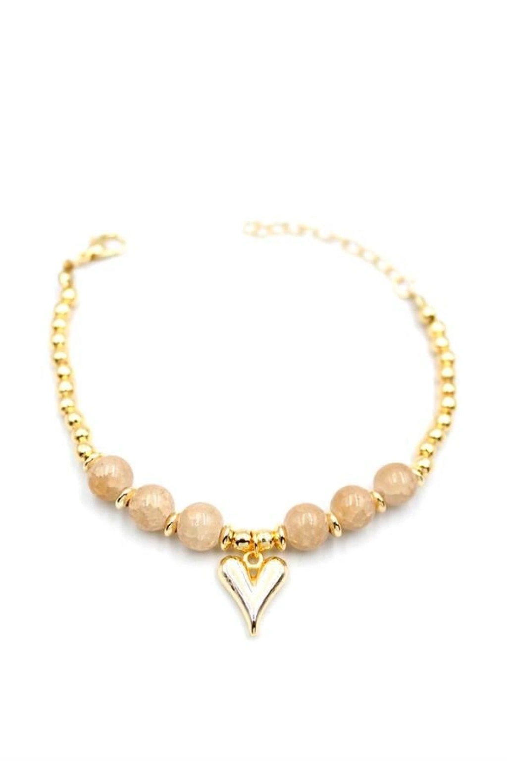 Boncuklu Kalp Bileklik - Krem