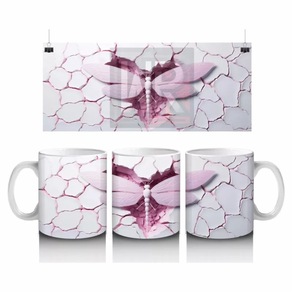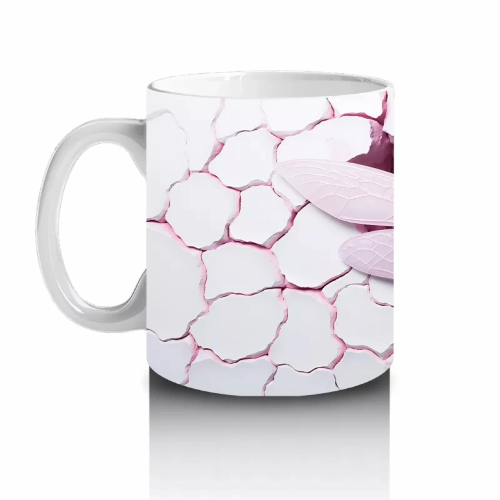 Çatlak Arka Planlı Pembe Kanatlı Kelebek – Baskılı Kupa