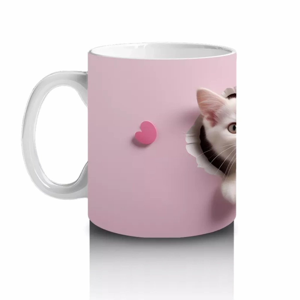 Çatlak Duvar Arasında Meraklı Beyaz Yavru Kediler – Baskılı Kahve Kupası