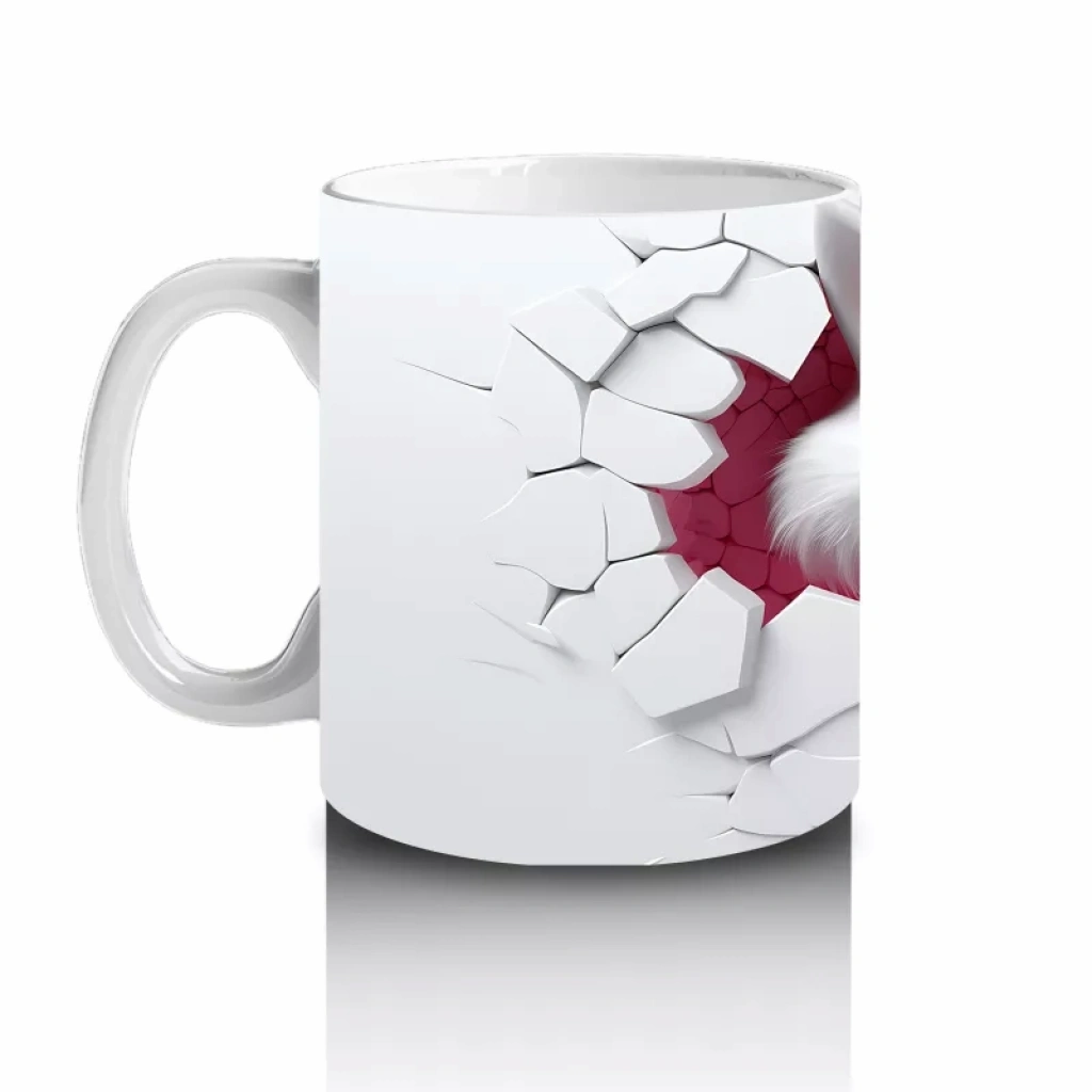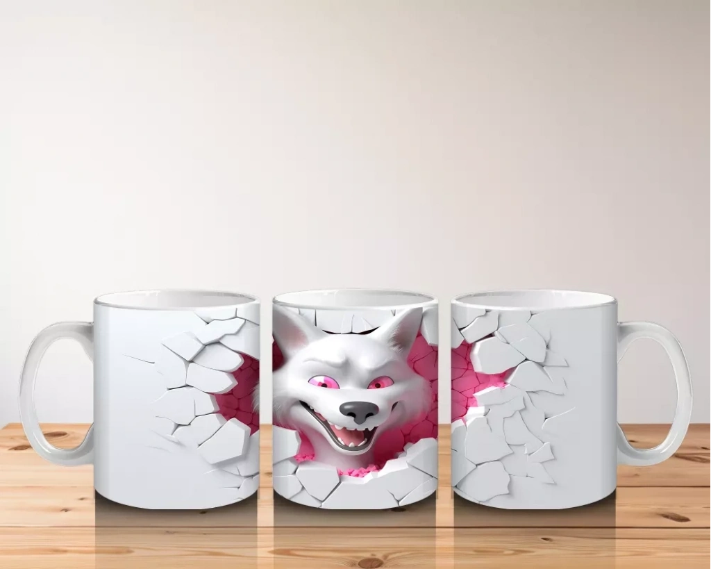Çatlak Duvar Arasında Pembe Gözlü Kurt Figürü – Baskılı Kahve Kupası