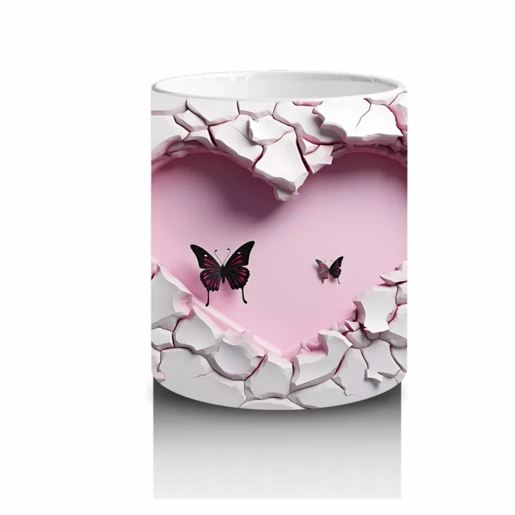 Çatlamış duvar üzerinde zarif kelebekler, hem doğal hem modern bir atmosfer yansıtıyor. Minimalist ve şık tasarımlardan hoşlananlara özel, dingin ve estetik bir kupa seçeneği.