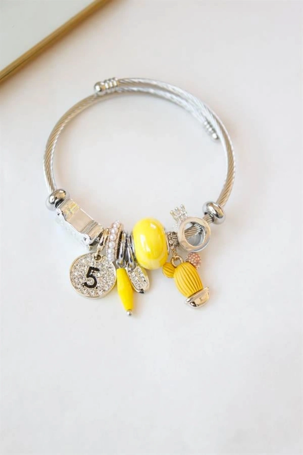 Çelik Charmlı Kaktüs Bilezik - Sarı