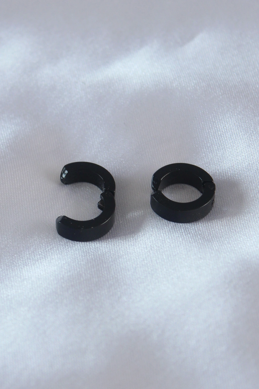 Çelik Siyah Renk Sıkıştırmalı Erkek Küpe
